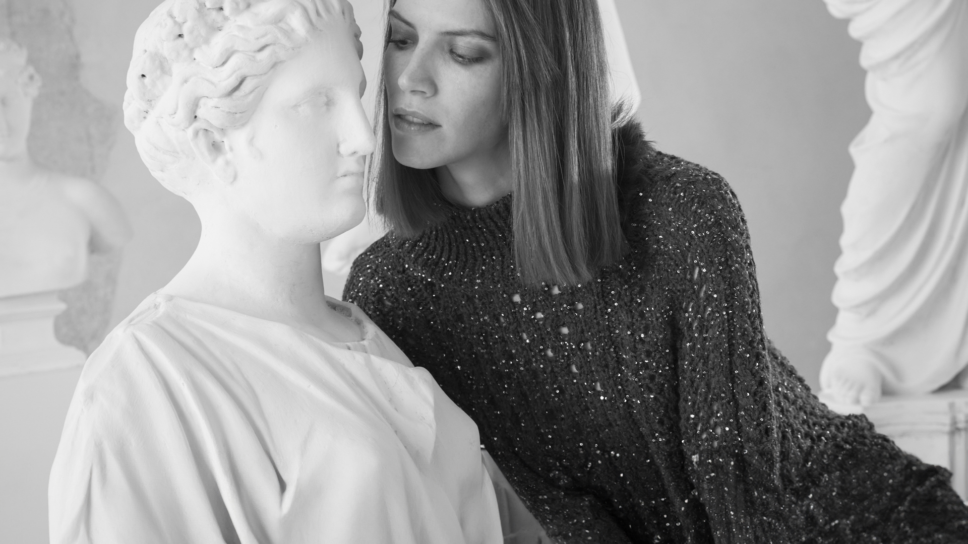 Neutral statement. Non lasciatevi ingannare dal minimalismo di una palette cromatica che sembra abbandonarsi con piacere alla tendenza dei neutri. Sono gli antracite metropolitani, i grigi severi del guardaroba maschile o le sfumature naturali di camel, sand, casha e cipria che evocano, in una sorta di sinestesia sensoriale, materiali di pregio. Una dichiarazione di neutralità e di lussuosa eleganza contemporanea che, in un attimo, si accende con la fluidità del metallizzato come piombo fuso, il bagliore delle micropailette a sorpresa tra i fili della maglieria,l’abbinamento a iper-femminili stampe animalier, la profondità del velluto, l’argento stellare della pailette all over, perfino sul piumino. Nulla è come sembra. Minimal è statement, ma femminilità è attitude.